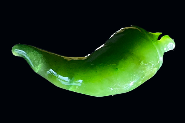 這枚翠綠的玉石辣椒,形態飽滿而生動,如同生命力最旺盛的綠意。它不僅象徵著長壽與健康,也像是一份自然的祝福。